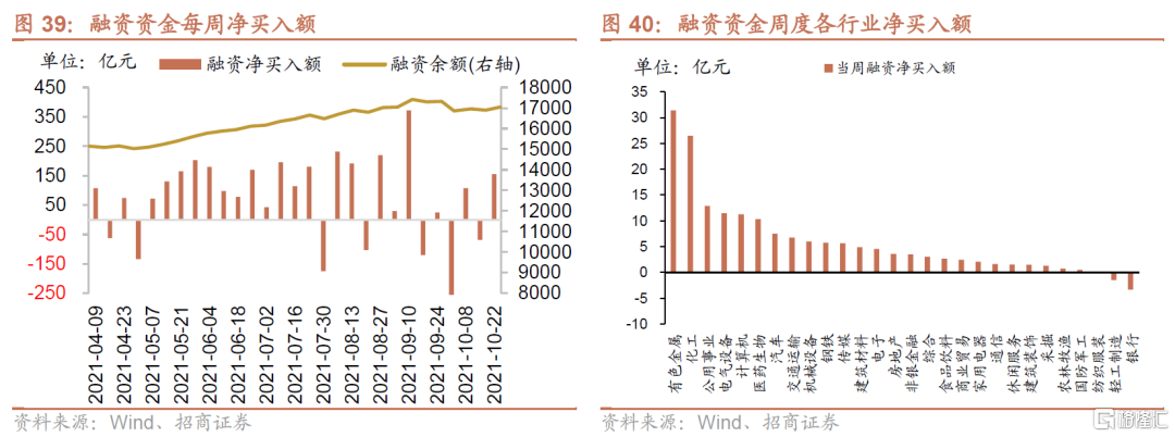 兩融方面,融資資金前四個交易日淨流入154.7億元。從行業偏好來看,本週融資資金集中買入有色金屬,淨買入額達31.4億元,其他淨買入規模最高的行業主要包括化工、公用事業、電氣設備等;淨賣出有銀行、輕工製造和紡織服裝。從個股來看,融資淨買入較高個股包括北方稀土、華友鈷業、三峽能源等,淨賣出較多的主要包括萬科A、瀘州老窖、萬華化學等。