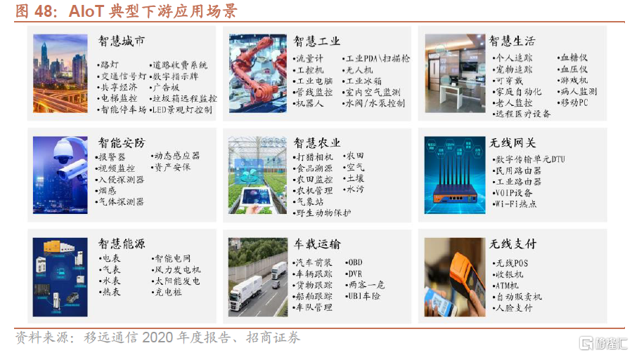 以人工智能+物聯網技術爲代表的AIoT革命正在到來,成爲信息技術革命下一個爆發點。2020年,我國AIoT產業規模爲或達5815 億元,同比增長52.7%。隨着 AIoT 技術日益成熟及應用場景的不斷豐富,AIoT應用層多場景需求逐步爆發,建議關注無人駕駛、工業互聯網、智慧城市等細分領域。