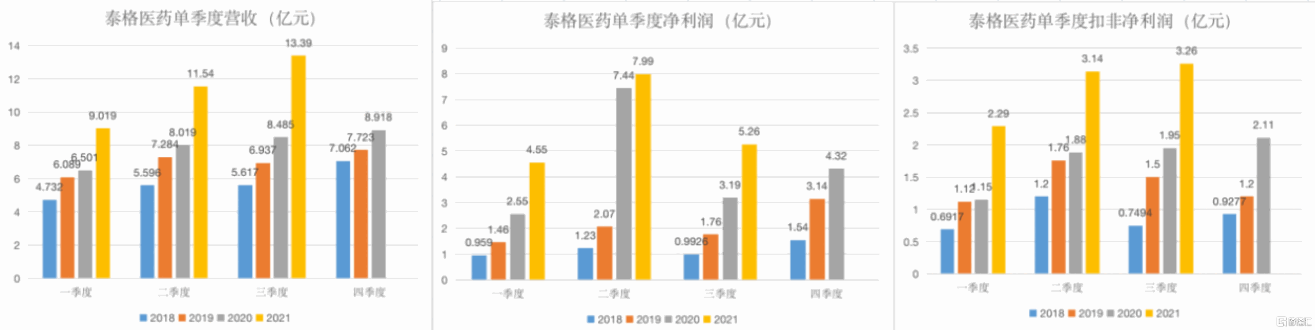 2021年10月22日,泰格醫藥發佈2021年三季報,2021年前三季度公司實現營業收入33.95億元,同比增長47.58%;實現歸母淨利潤17.81億元,同比增長35.13%;實現扣非歸母淨利潤8.69億元,同比增長74.62%。