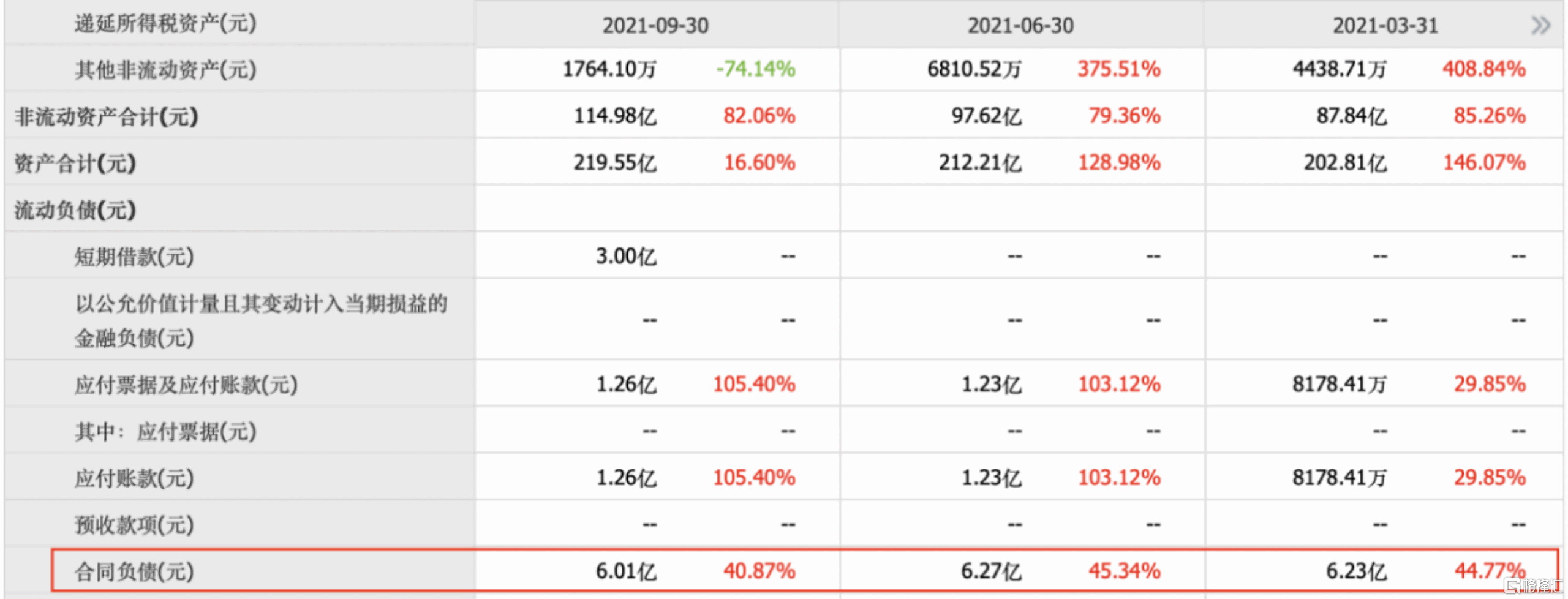 公司2021前三季度經營性現金流淨額7.28億元,同比增長40.90%,主要是收入增長及回款良好。合同負債6.01億元,同比增長40.87%,預計主要由於在手訂單大幅增長所致。