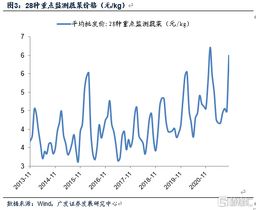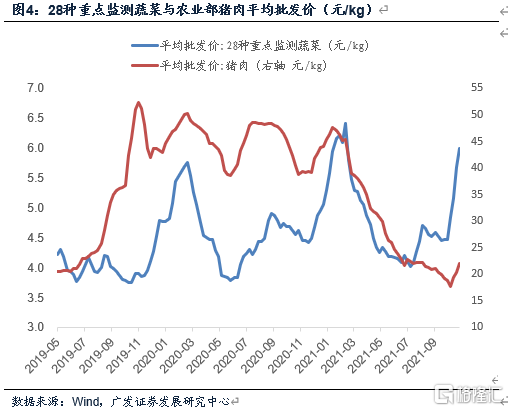 線索三:從PPI向CPI會存在一定傳遞效應。前期煤炭價格上行,會導致北方地區蔬菜溫室大棚的成本上升;油價上升擡高運輸成本,這些因素也會部分助推終端蔬菜價格。