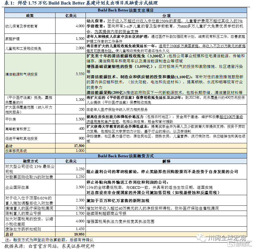 東吳宏觀:拜登1.75萬億基建法案大看點