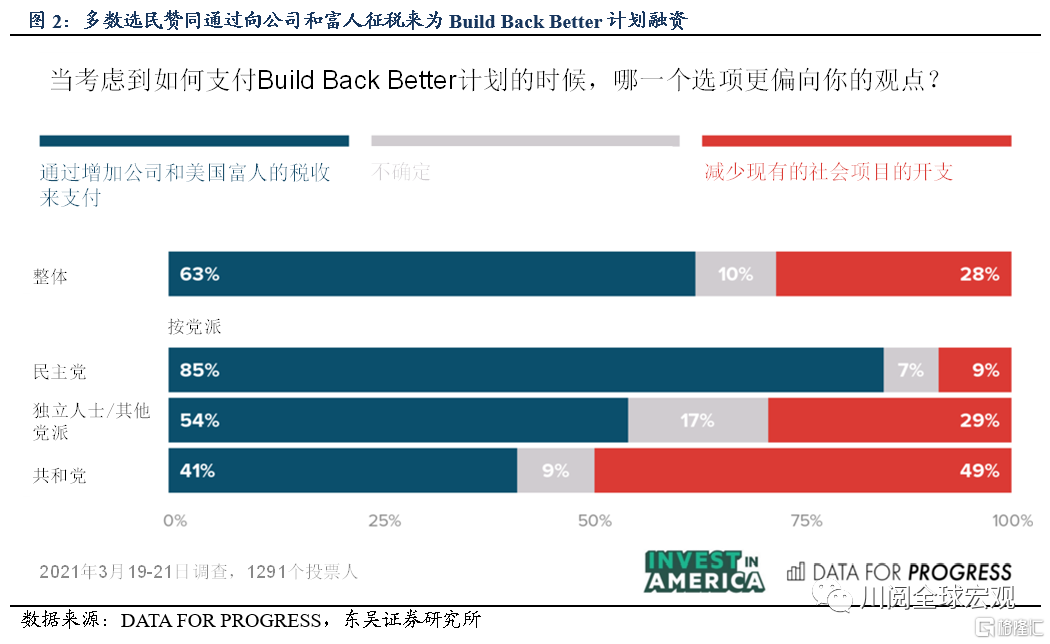 拜登民調支持率已經從7月起開始加速下滑(圖1),而劫富濟貧的增稅計劃有廣泛的民衆基礎(圖2),基建計劃通過有助於穩固民調支持率。此外,拜登即將前往歐洲出席下週的聯合國氣候峯會,爲了證明美國在氣候領域的全球領導力,如果在本週就基建計劃達成一致,將使得拜登可以鼓吹其在氣候領域取得的進展。