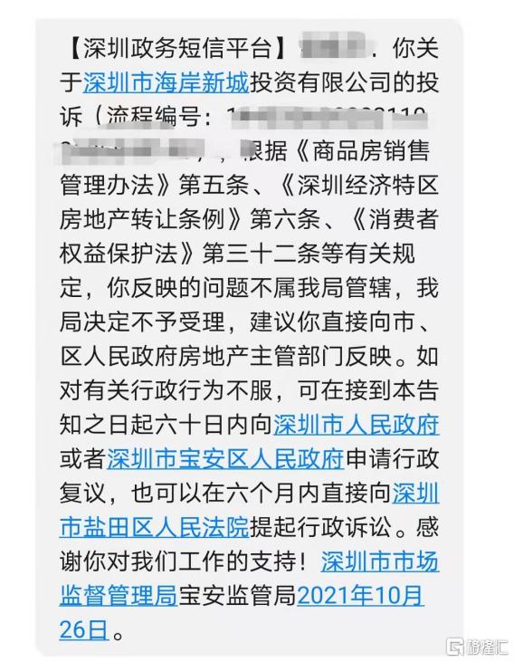 而面對解決措施異常難以推進的情況,受訪業主表示,已經向深圳市市場監管局寶安監管局反饋,但是回覆結果是需要向房地產主管部門反映。