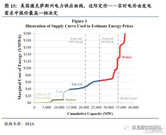 海外電價上漲,光伏發電價格接受度提升。在市場化電價交易中,在滿足用電需求的前提下,電價由成本最高的供給方決定。SEIA描繪了德克薩斯州能源批發市場的電力供應曲線,描繪系統需求、邊際發電和能源價格之間的關係。當用電需求處於低負荷時期,實時電價由成本較低的光伏、核能發電成本決定;隨着電力負荷的提升,電價會依次由發電成本更高的煤電、天然氣決定。長期看天然氣的價格中樞有望上移,原因在於在全球低碳轉型背景下,傳統油氣龍頭增加資本開支意願極低,全球礦業開採巨頭必和必拓宣佈退出油氣業務。Fitch Solutions研究預測未來五年全球油氣資本支出仍呈現遞增趨勢,但直至2025年依然不能恢復2019年的水平。而天然氣需求仍在增長,供需格局分化將使得天然氣價格中樞上移,也擡高了波峯時刻電價,側面提高了海外對光伏發電價格接受度。
