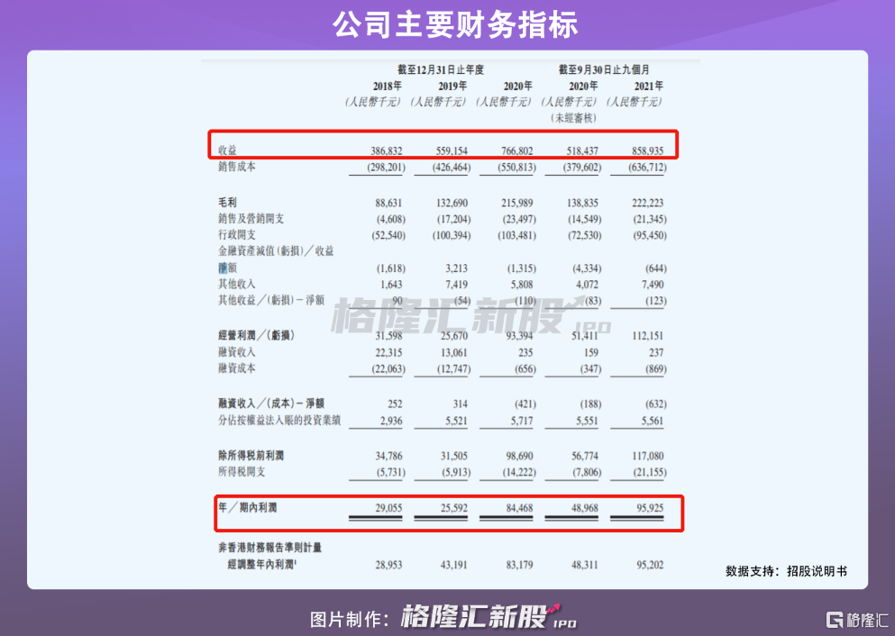與其他物管公司相似,東原仁知服務的收入主要來自三條業務線,即物業管理服務、社區增值服務及非業主增值服務。2018年-2020年,公司的營業收入由3.87億元上升至7.67億元,複合年增長率約為40.8%;同期年內溢利由2905.5萬元增長至8446.8萬元,年複合增長率為70.5%。與此同時,毛利率也逐年增長,分別為22.9%、23.7%及28.2%。