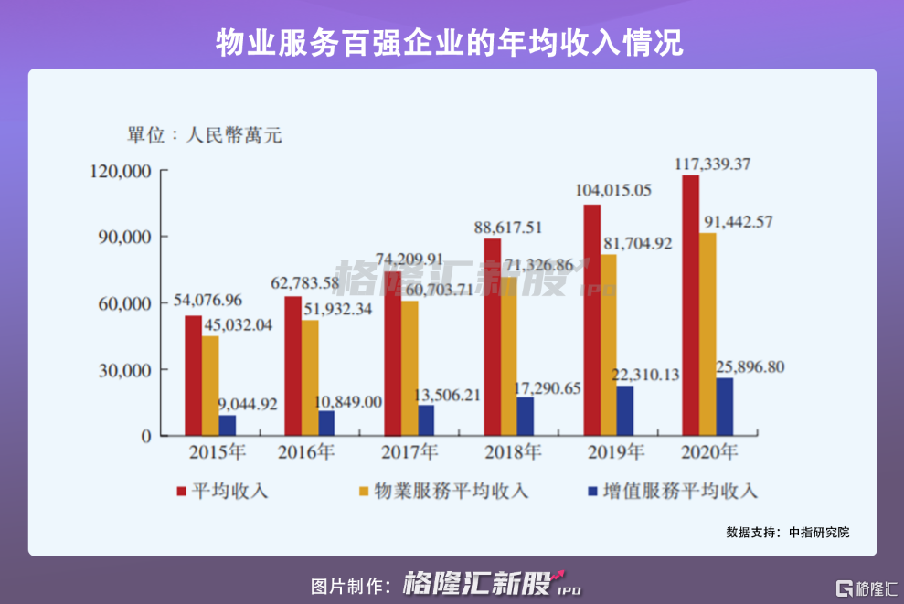 從收入端來看,亦是如此,物業服務百強企業的年均收入由2015年的54077萬元增加至2020年的117339萬元,複合年增長率16.76%。