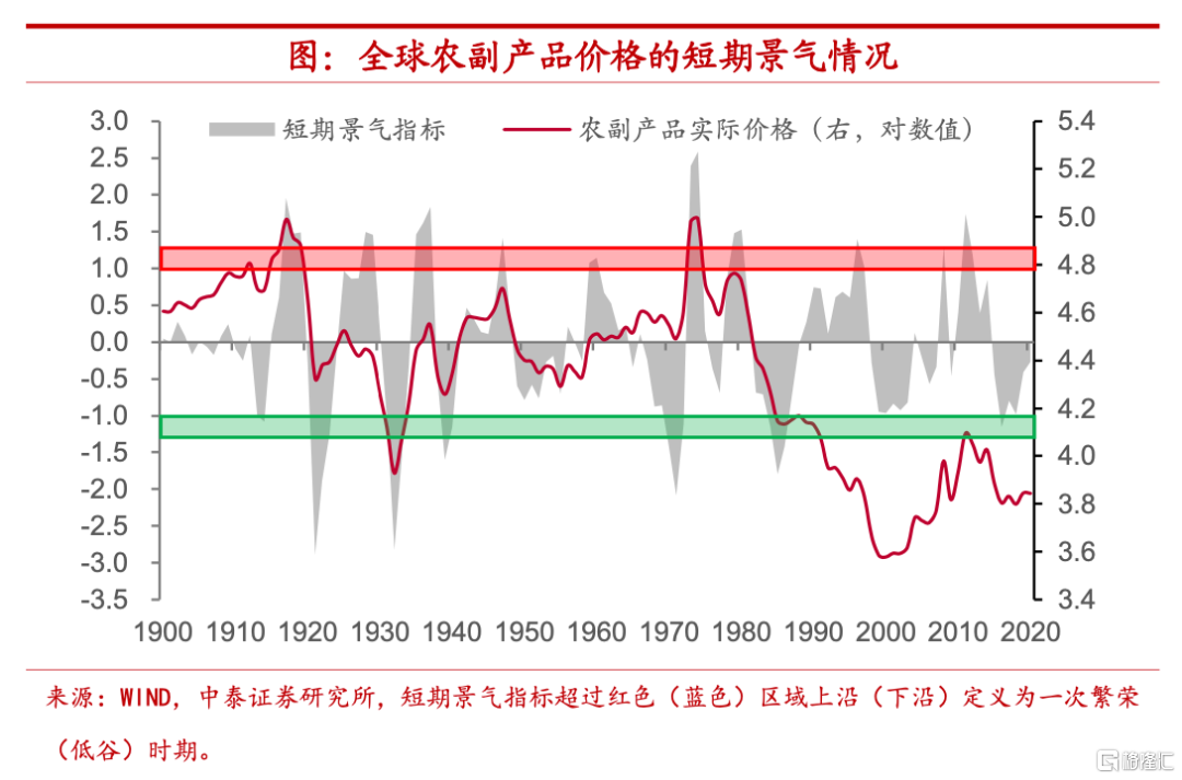 短期景氣相對平穩。而從剔除了趨勢和週期波動的短期景氣指標來看,自2013年以來全球農副產品價格就處於相對平穩的波動期,並沒有確定性的方向,上一次景氣度相對繁榮的時期還是發生在2011-2012年期間。