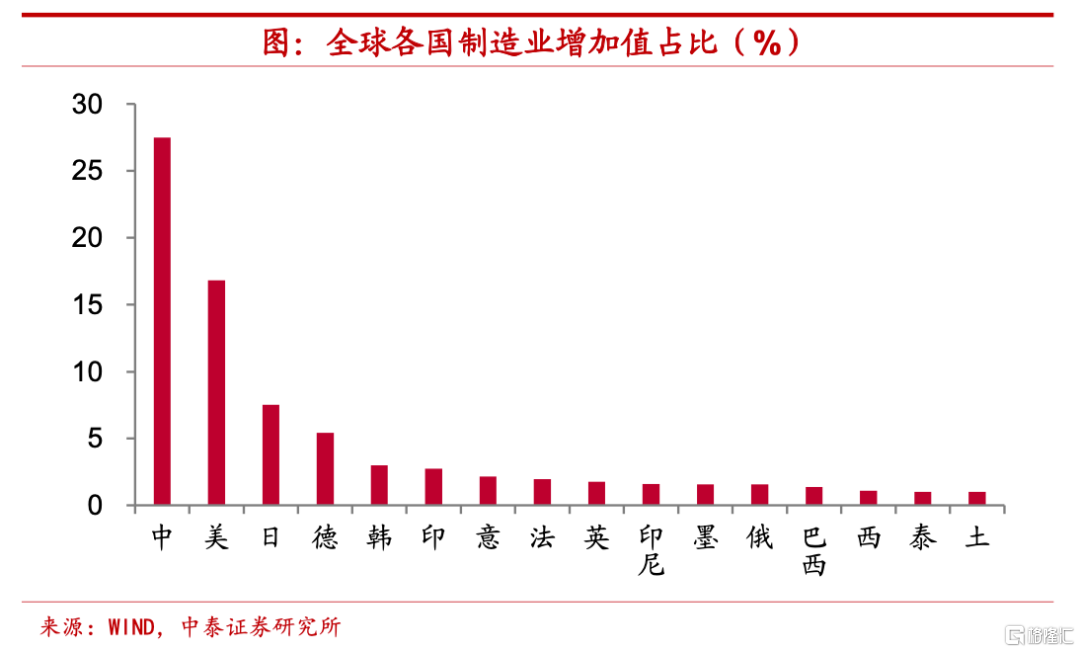 擺脫製造國困境,主動提前應對。此外,從五到十年的時間維度來看,屆時全球大宗商品價格週期下行期或將結束,而發達經濟體人口老齡化程度的加深、貿易保護主義的擡頭以及中美競爭態勢的長期存在或將使得全球貿易量增速漸趨平緩。這意味着,在全球產業分工鏈條上的中遊製造國,發展壓力會有明顯加大。而我國在此時通過推進碳達峯碳中和的國家戰略,倒逼產業結構向高級化轉型,是對全球經濟發展環境變化的主動和提前應對。