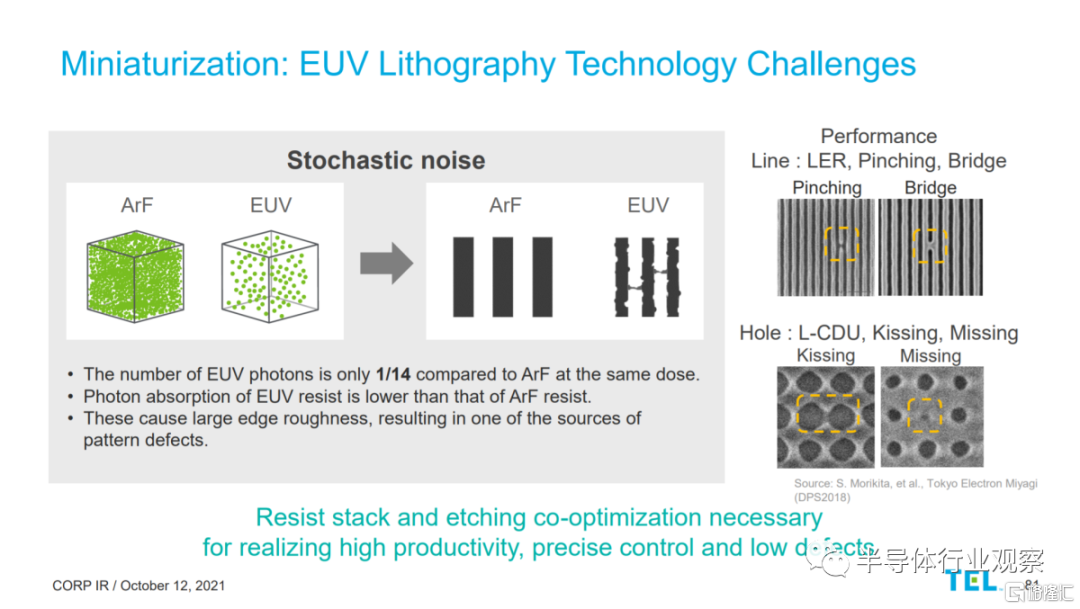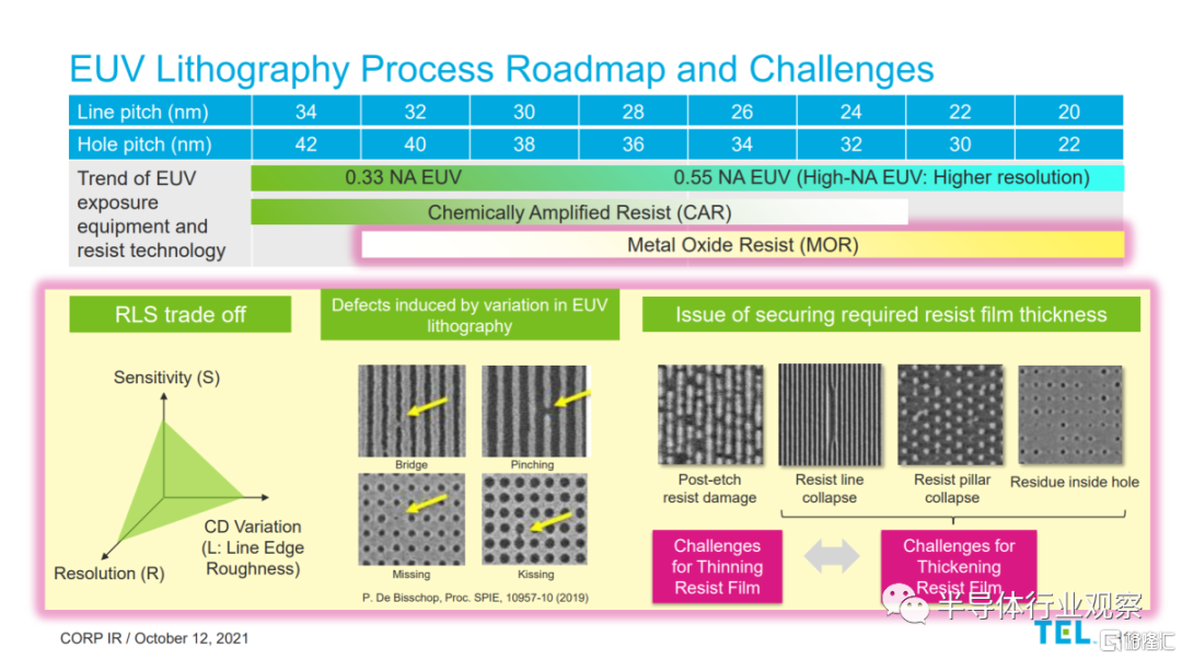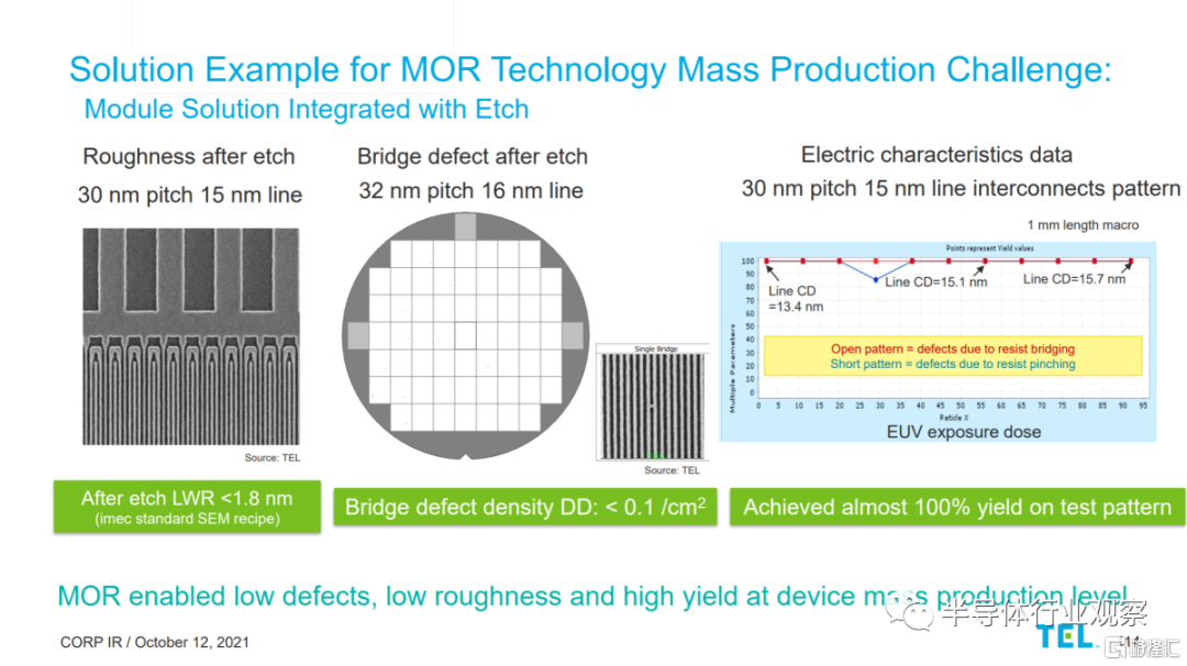通過 MOR,Tokyo Electron 正在努力優化從塗層、烘烤、開發,並一直到蝕刻的整個工藝流程。他們聲稱他們已經實現了每平方釐米 0.1 個缺陷的缺陷密度。這聽起來很棒,但這種缺陷密度意味着每 300 毫米晶圓有 70.6 個缺陷。光刻工藝在前沿晶圓上進行了 70 多次,而 N3 工藝將對每個晶圓進行 20 多次EUV 浸漬。那就意味着這些缺陷確實開始堆積並破壞產量。MOR 仍有一些障礙需要克服。