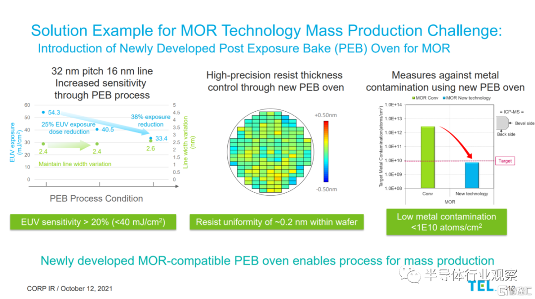 TokyoElectron 和 JSR 聲稱他們有一種新的金屬氧化物抗蝕劑曝光後烘烤工藝,這將有助於提高光刻膠的靈敏度。這意味着晶圓廠可以顯著降低 EUV 機器所需的劑量,從而提高產量。
