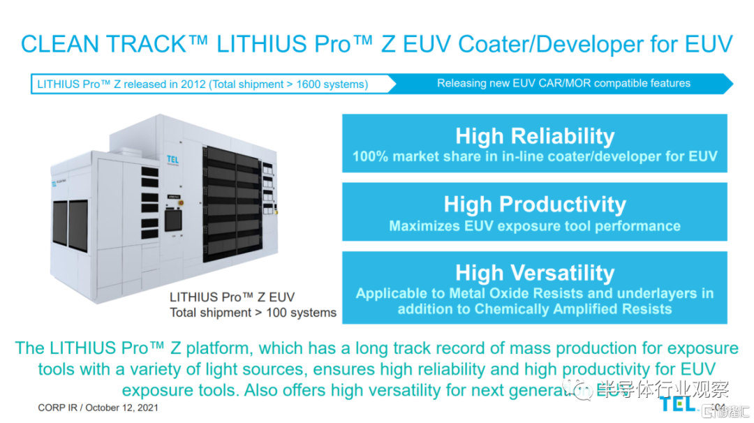 MOR 仍然使用與當前光刻工藝類似的步驟。通過懸浮在溶液中,將其旋塗到硅片上。他們可以通過升級,從而可以在相同的Tokyo Electron Clean Track Lithius Pro Z上使用。這種升級不是資本密集型的,且可以使用 CAR 或 MOR 光刻膠。