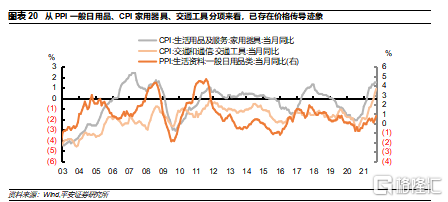 近期上遊原材料價格高漲的壓力已經出現向下傳導的跡象(圖表20)。8月以來,PPI中一般日用品價格出現加速上漲跡象;CPI中的交通工具同比已創歷史最高;CPI中的家用器具同比也處於歷史高位。10月調味品龍頭海天味業宣佈對主要產品出廠價提價3-7%不等,安井食品、恰恰食品等也宣佈將對旗下部分產品價格調升3-10%、8-18%不等,由此掀起食品漲價潮。爲此,有必要討論當上遊價格存在向下遊價格的傳導效應時,煤電價格上漲所帶來的影響。