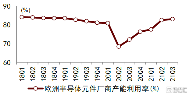 圖表:歐洲主要半導體元件供應商產能利用率情況