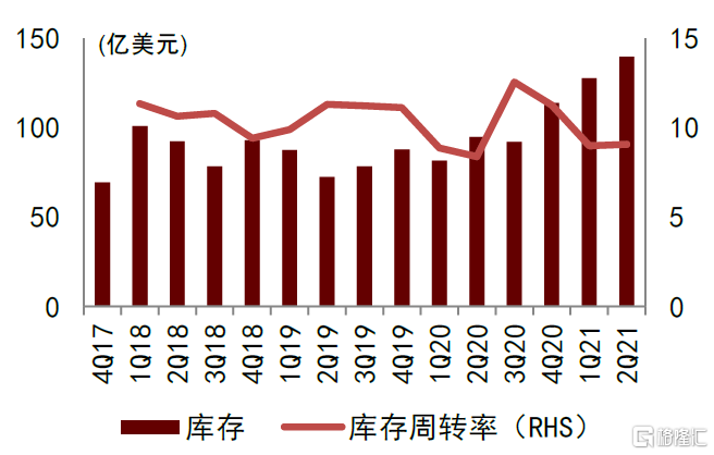 資料來源:萬得資訊,彭博資訊,中金公司研究部注:公司樣本包括英特爾、英偉達、博通、德州儀器、亞德諾、恩智浦、SKYWORKS、意法半導體、美光、AMD、高通公司、聖邦股份、韋爾股份、匯頂科技、兆易創新、聞泰科技