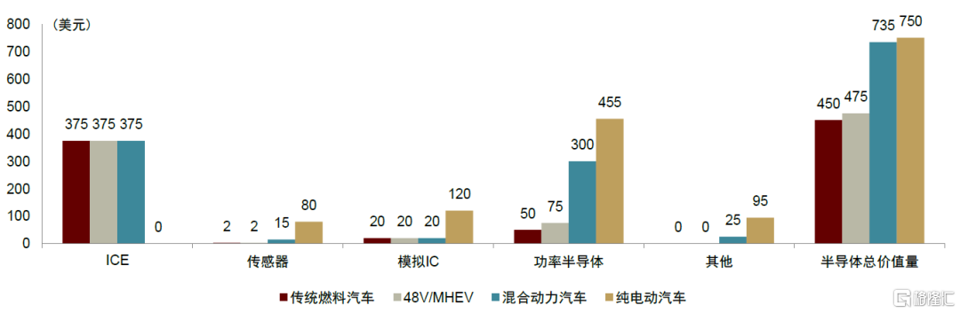 圖表:不同汽車半導體價值量估算對比(2020年)
