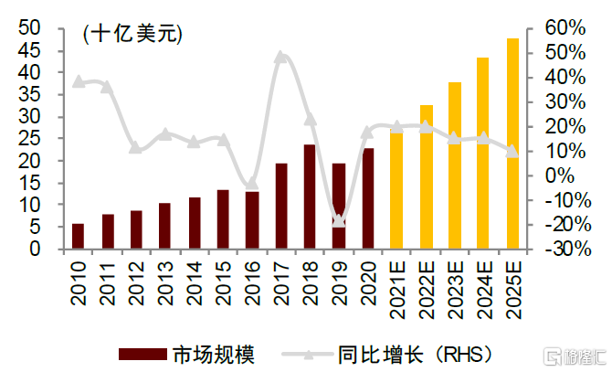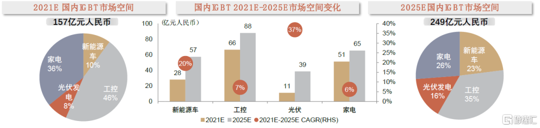 圖表:2021E-2025E國內IGBT市場空間及增速測算
