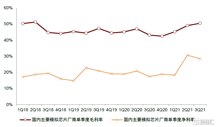圖表:國內主要模擬芯片廠商單季度利潤率