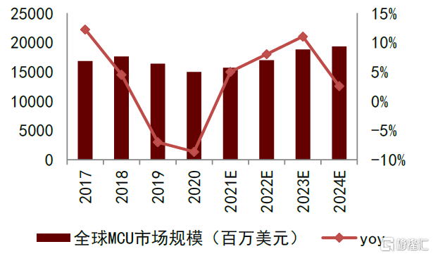 圖表:2010-2021E年全球不同位數MCU產品銷售額情況