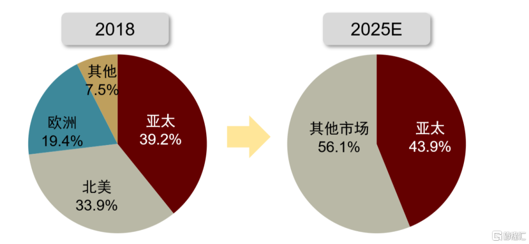 晶圓製造行業綜述:我們認爲積極擴充產能依然是中國大陸晶圓製造企業的大趨勢。根據IC Insights,2020年中國大陸芯片市場規模爲1,443億美元,佔全球比最大,約36%。但剔除臺積電、聯電、SK Hynix、Samsung、Intel等海外廠商在中國大陸的產值後,真正由中國大陸企業貢獻的晶圓製造產值僅爲83億美元,半導體芯片自給率仍處於較低水平。爲縮小產能缺口,我們認爲中芯國際、華虹半導體、長江存儲、合肥長鑫等中國大陸晶圓代工/存儲器廠商有望在未來幾年繼續維持較快的產能擴張計劃,我們預計2020-2025年中國大陸晶圓製造市場有望保持15%以上CAGR,到2025年市場規模有望達到480億美元。