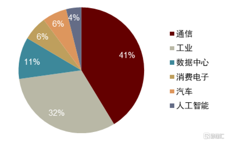 ► 通信是FPGA芯片下遊最主要市場。隨着5G步入首輪全球建設期,通信技術發展、基站天線收發器等硬件設備升級,中國FPGA通信領域市場需求強勁。