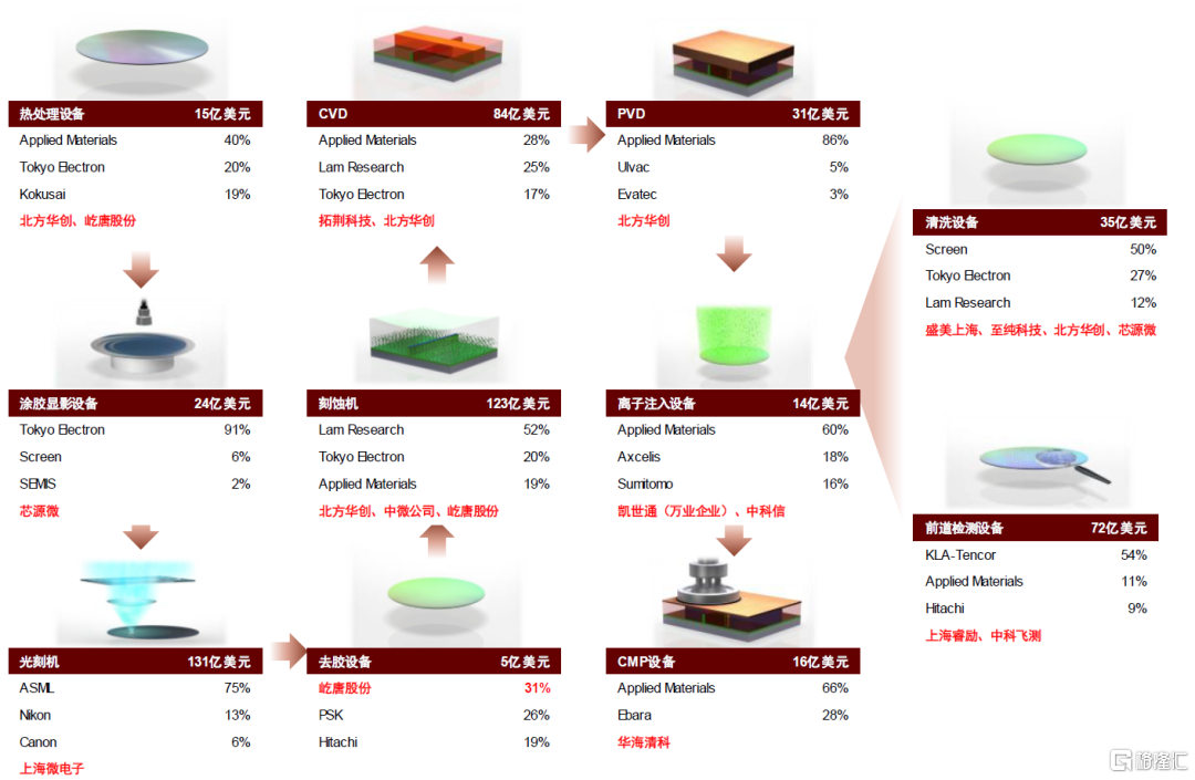 圖表:國內前道設備廠商在各細分市場卡位情況