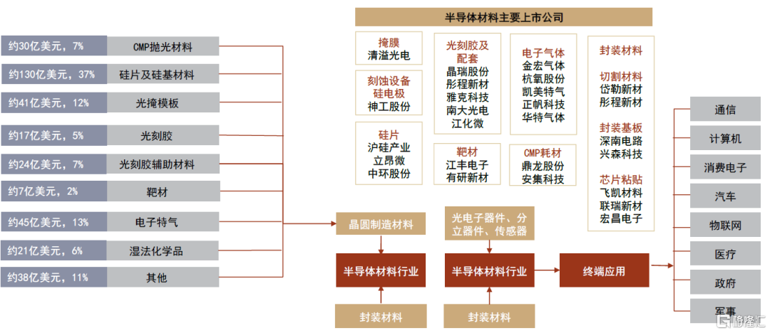 圖表:半導體材料產業鏈及對應2020年市場規模