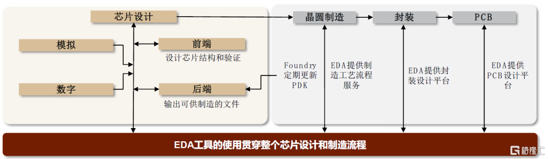 圖表:EDA設計工具的使用貫穿整個芯片設計和製造流程