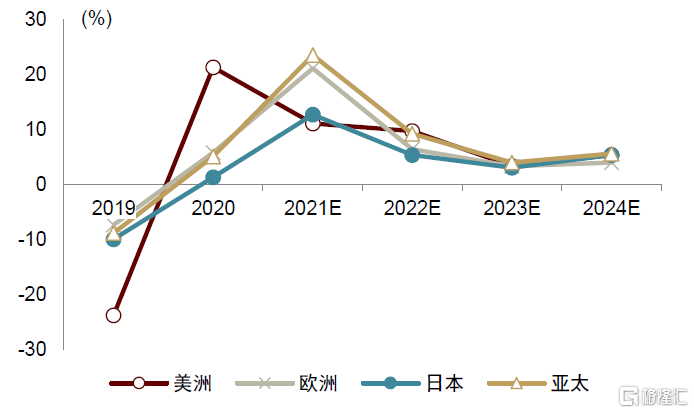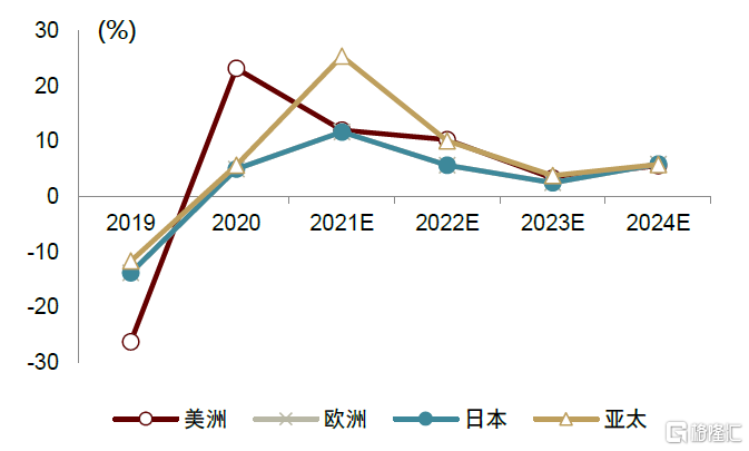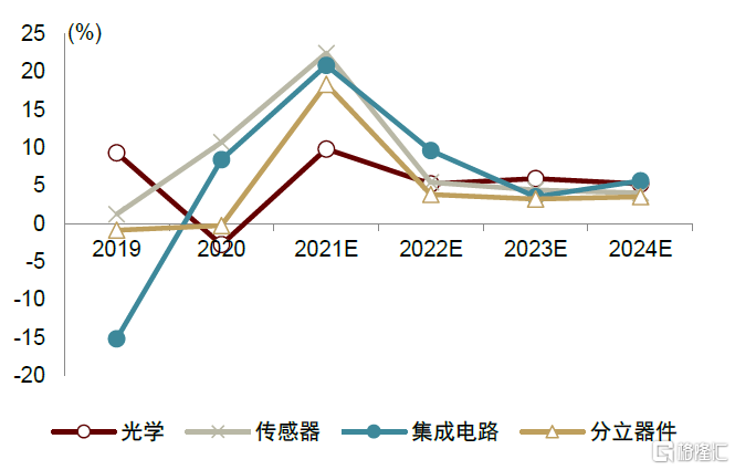 圖表:全球集成電路產值同比增速(按應用場景分)