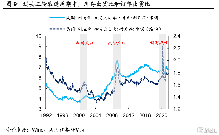 從三大庫存走勢來看,製造商庫存和批發商庫存的相關性較高。而從1990年代開始,美國的低端產業鏈外移使得美國大量依賴進口來滿足一些低端產成品的需求,因此,製造商和批發商的走勢時常和零售商庫存出現背離。