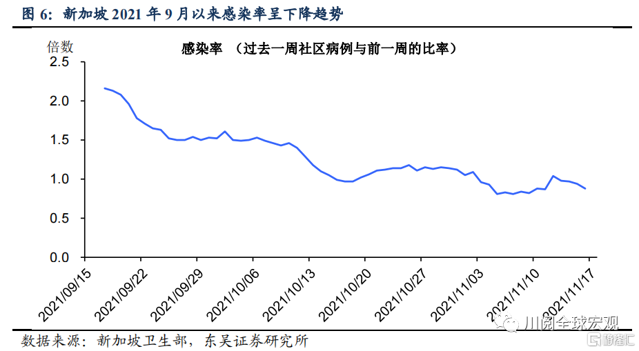從當前狀況來看,新加坡的政策放開較爲成功,儘管經歷了新增病例的激增,但高疫苗接種率使得重症率、死亡率以及醫療系統壓力在可接受的範圍內。隨着封鎖的進一步放鬆,新加坡的服務業有望加速修復,受到抑制的消費得以釋放,支撐消費板塊進一步反彈。