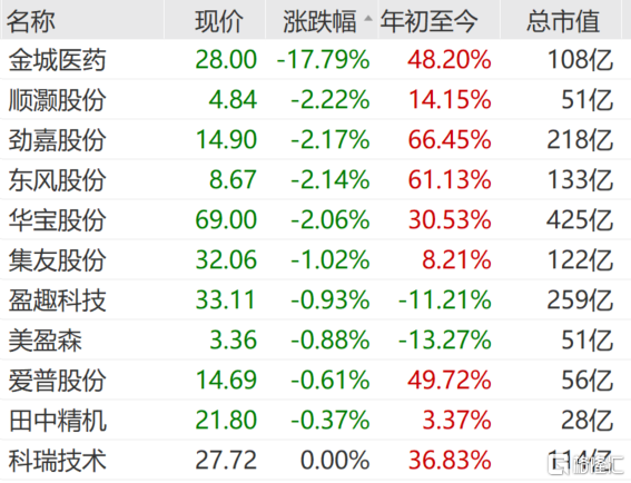 A股異動 | 電子煙概念股低開 金城醫藥跌超17%