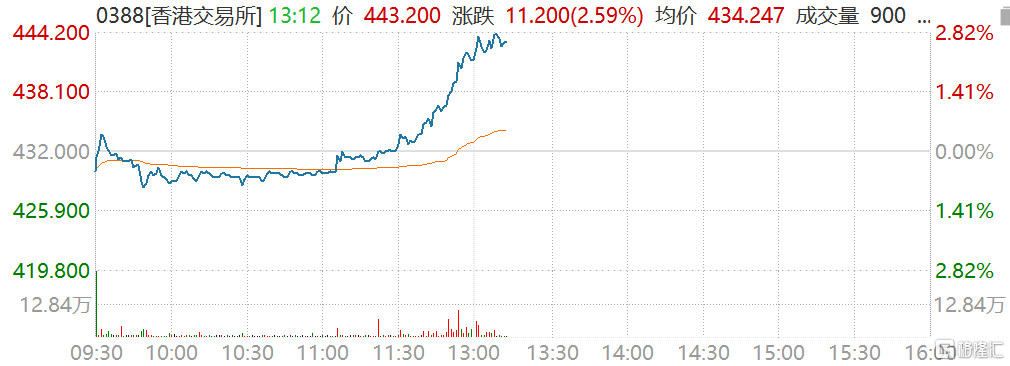 格隆匯12月3日丨港交所(0388.HK)拉昇漲2.82%報444.2港元。消息面上,滴滴宣佈啓動在香港上市的準備工作,有媒體稱滴滴出行的目標是在明年3月左右在香港提交IPO招股書。另外,美國確定《外國公司問責法案》實施規則,市場或預期將會有更多的公司回港上市。