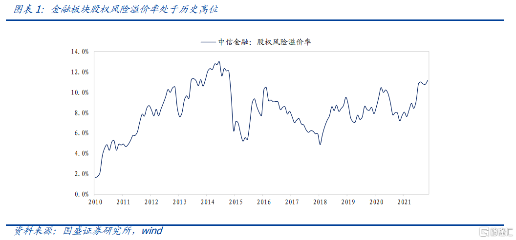 隨着近期降準相關政策落地,疊加我們這邊金融行業的盈利和估值相關的模型,我們建議重點關注金融板塊的配置價值。下面給出金融細分行業的具體配置建議,具體模型細節可以參考正文內容。首先從估值角度來看,金融板塊股權風險溢價率約爲11.2%,處於歷史高位,估值具備很高的配置性價比。