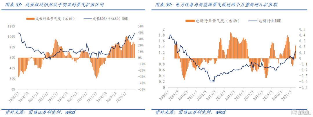 根據我們編制的分析師景氣指數,成長板塊處於景氣擴張區間,再疊加經濟景氣下行期間市場對高景氣板塊的關注,建議超配。板塊內部來看,目前電力設備與新能源、國防軍工、通信和計算機等TMT板塊處於高景氣度狀態,建議關注。