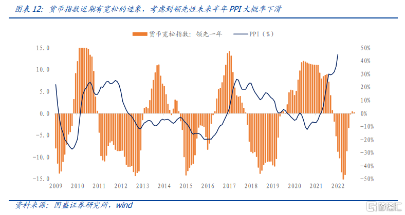 貨幣寬鬆指數近期向上突破0軸轉正,有寬鬆的跡象。但考慮到其相對PPI有接近一年的領先期,因此可以預判2022年PPI大概率會明顯下滑。