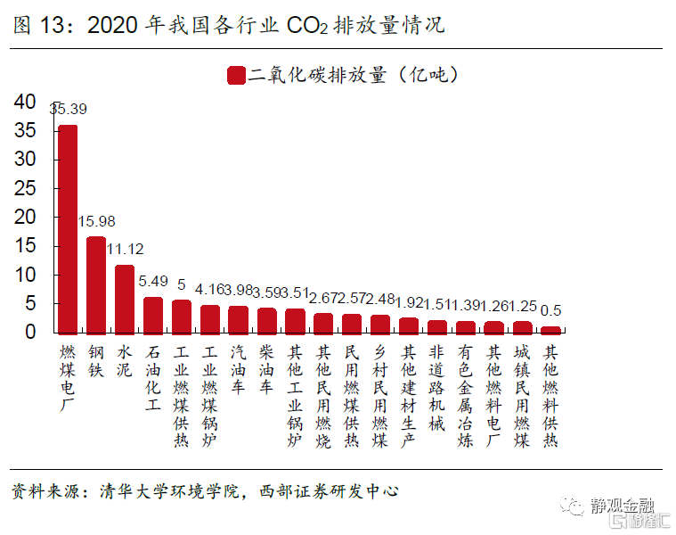 從我國分行業碳排放量佔比來看,除應納入全國碳排放市場的電力行業(35%)之外,鋼鐵(15.40%)、水泥(10.71%)、石油化工(5.29%)等工業部門碳排放量也佔據較大份額。基於實現“雙碳目標”及活躍碳交易市場的考量,未來更多高碳排放行業納入全國碳市場。關於具體哪些行業可能納入全國碳市場交易,生態環境部應對氣候變化司司長李高曾表示,鋼鐵行業“十四五”期間將盡早納入碳排放權交易市場。上海環境能源交易所總經理劉傑也曾表示,明年將陸續把電解鋁、水泥這些高排放行業納入碳排放市場。此前,上海環境能源交易所賴曉明董事長指出,現已有計劃在明年將有色冶煉和建材行業納入全國碳市場中。