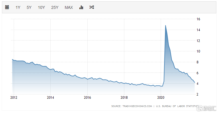 美國的11月失業率已經降至了4.2%(前值4.6%)的低點,同時就業參與率回升至61.8%(前值61.6%);11月新增非農就業人數爲21萬人,11月時薪同比增速爲4.8%,前值4.9%。