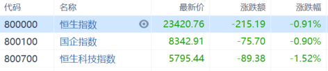 今日,港股主要指數午後跌幅擴大,恆生科技指數一度跌超2%,收跌1.52%,恆指跌0.91%,國指跌0.9%。大市成交額爲1277億港元,南下資金逆勢淨流入44.76億港元。