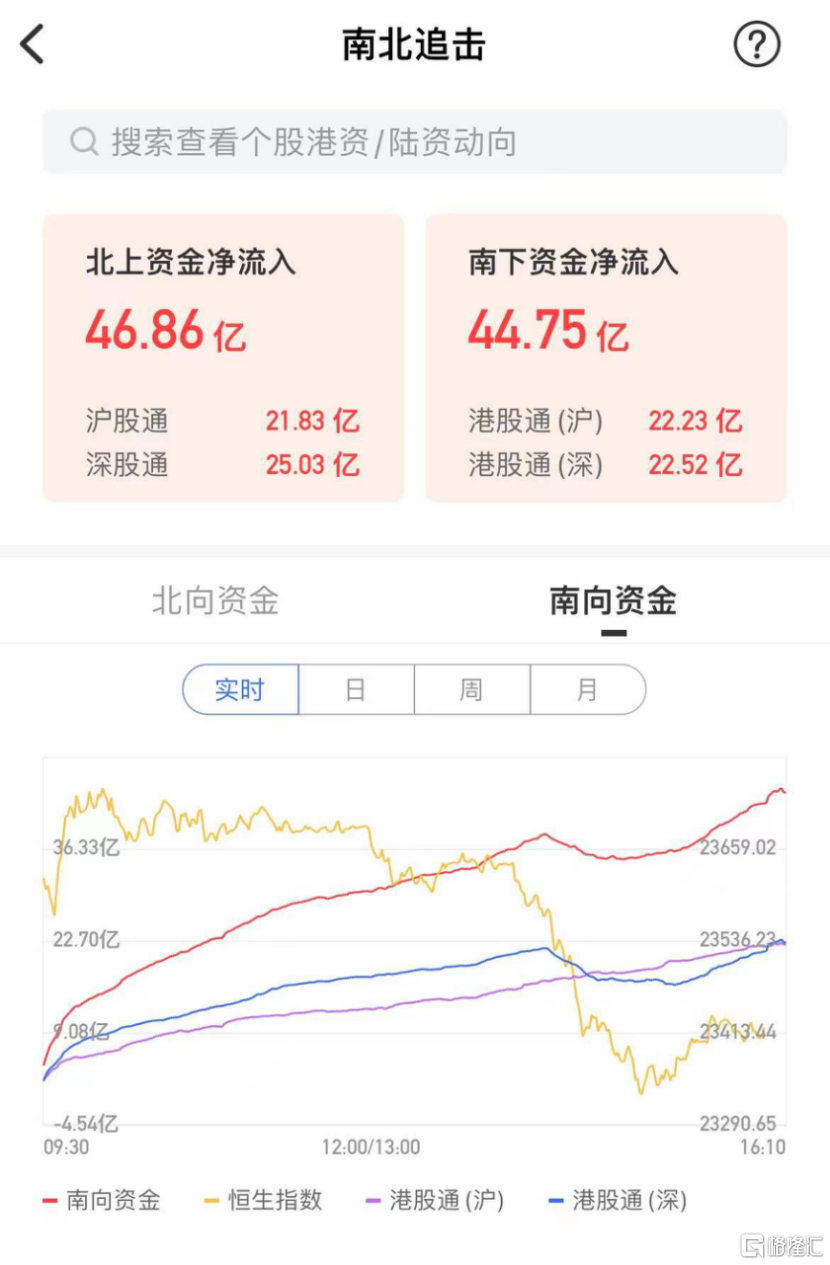 南向資金淨流入44.75億港元,港股通(滬)淨流入22.23億港元,港股通(深)淨流入22.52億港元。