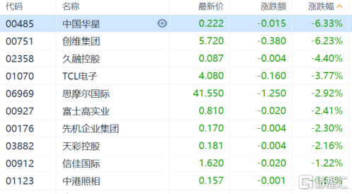 消費電子板塊走低,中國華星、創維集團跌超6%,久融控股跌超4%,TCL電子跌超3%。