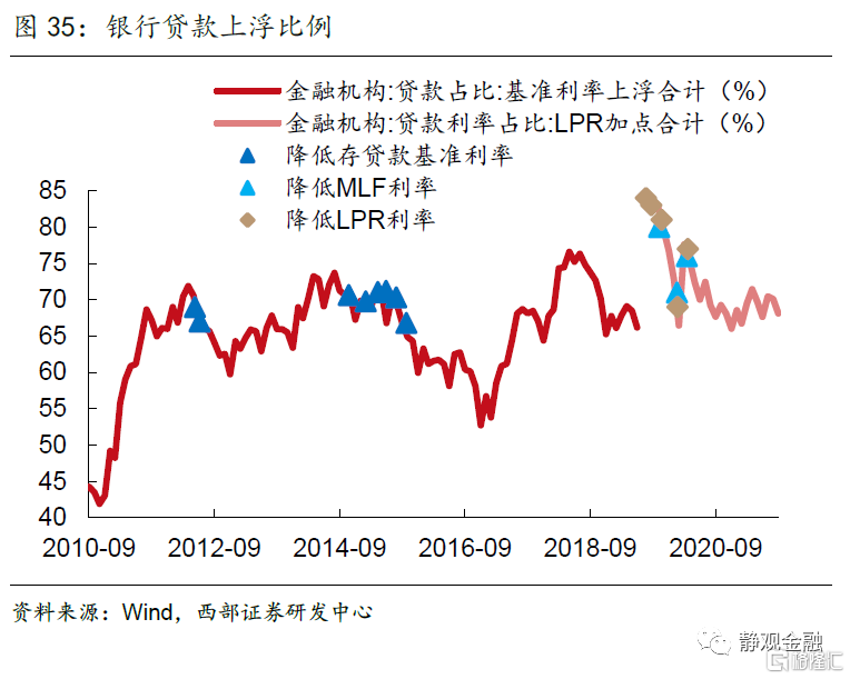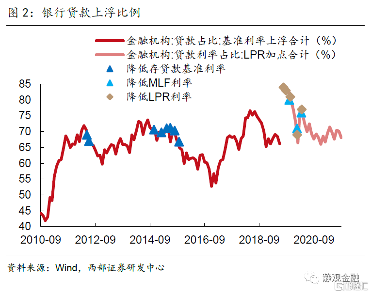 由於傳導路徑的不同,我們着重分析2019年降息週期通過“MLF利率-LPR利率-實際貸款利率”對於實體經濟融資成本的影響。