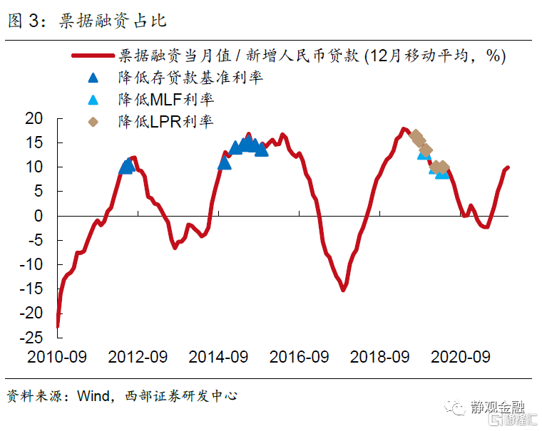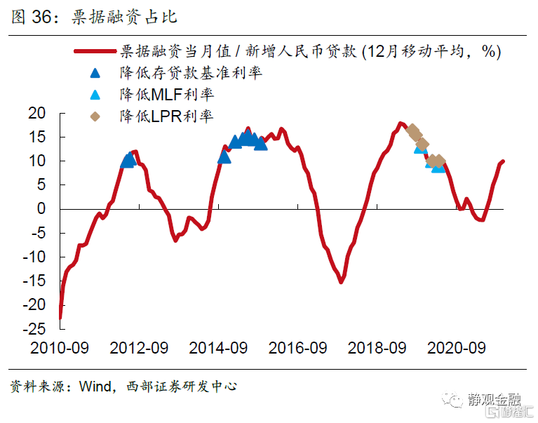 最後,實體經濟貸款需求不足。無論從人民銀行的調查統計,還是銀行的行為(票據佔新增貸款比例、基準利率上浮貸款佔比)可以看出,在三輪全面降息開啟前,實體經濟的貸款需求均表現出不足。