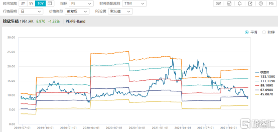 從股價走勢表現來看,受到整體港股市場表現不佳以及下半年醫藥板塊估值回落影響,錦欣生殖股價走勢並不理想。根據WIND數據顯示,截止2021年12月17日收盤,錦欣生殖PE/PB BAND已經從年初的高位回撤至估值區間中位值之下,幾乎探底至2020年初新冠爆發初期股災的歷史低位。