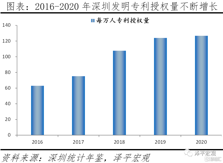 1)深圳:人口潛力遠超北上廣,近10年常住人口年均複合增長率居全國第一,人口潛力助力創新能力提升疊加以市場需求爲導向的獨特創新模式,創新發展水平居全國首位。從人口潛力看,深圳相對較快的經濟發展速度、寬鬆的落戶制度、較大的人才補貼力度以及衆多著名互聯網企業等新興企業的落戶使其成爲全國人口增長最快、最年輕、人才淨流入較高、城鎮化率最高的城市。2010-2020年常住人口年均複合增長率達5.4%,居全國第一;勞動年齡人口佔比近80%,老齡化程度全國最低,遠優於北京、上海;深圳近四年保持人才淨流入,2020年人才淨流入佔比爲1.3%。從創新發展看,人口高增速、年輕人口多、人才淨流入疊加深圳以市場需求爲導向進行創新的獨特模式,使深圳科技創新動力強勁,創新發展水平全國第一,尤其是創新投入力度大、創新成果轉化水平高。2019年財政科技支出佔一般公共預算支出的比例、2020年每萬人口專利授權量均爲全國第一,且遠高於北上廣。