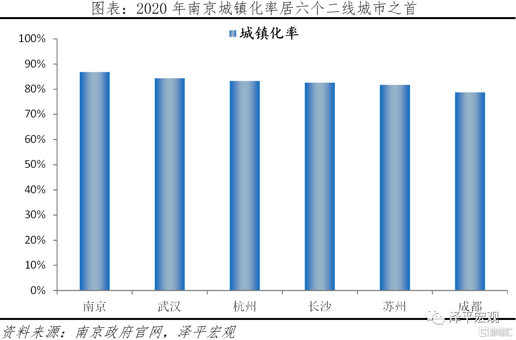 2)南京:人口潛力表現僅次於杭州,城鎮化率居六大二線城市之首,人才淨流入率僅次於杭州,主因六朝古都的城市魅力、高端製造業快速發展疊加“寧聚計劃”實施吸引人才。從城市魅力看,南京有2500年曆史,是國家歷史文化名城、六朝古都、十朝都會,歷史文化積澱濃厚,具有獨特的城市魅力。從產業結構看,南京聚焦軟件信息、新能源、醫藥健康、集成電路、人工智能、智能電網、軌道交通、智能製造裝備八大產業,以高端化、智能化、綠色化、集羣化爲發展方向,高端製造業快速發展,2020年規上高技術製造業增加值同比增28.8%。從人才政策看,“寧聚計劃”人才落戶門檻低,面試、租房、創業人才補貼力度較大,也對人才形成較大吸引力。城市魅力、高端製造業發展、“寧聚計劃”等因素疊加吸引了大批人才,2020年人才淨流入率在六個二線城市中僅次於杭州。