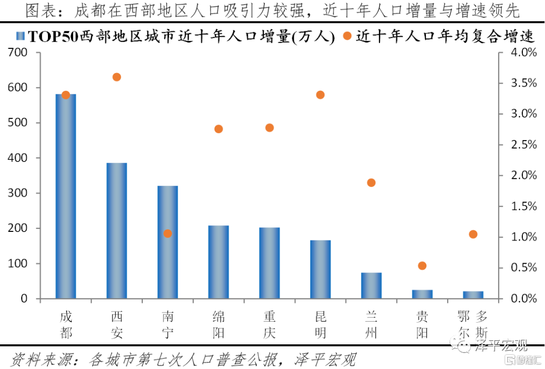 3)西安高質量發展第17名,以十三朝古都文化底蘊、國家中心城市定位、寬鬆的落戶政策吸引人口,西北人口潛力第一城;教育資源實力、營商環境優化、科研投入強度大推動西安科技創新水平提升。從人口潛力看,西安是西北中心城市,歷史上是十三朝古都,現在被定位爲國家中心城市,疊加寬鬆的落戶政策,近十年西安常住人口年均複合增速居全國第十,人口增量位列全國第五,大學文化程度人口佔比達31%,學歷程度僅低於北京、南京、上海、武漢。從創新發展看,西安教育資源在全國居前列,211/985大學數量以8所居全國第三,僅次於北京、上海,優質的教育資源使西安創新人才優勢明顯,2020年普通本專科在校生規模居全國第七。西安營商環境優化提升企業創新能力,通過“千名幹部助千企”“一站式服務”“綠色通道”“容缺受理”“互聯網+政務服務”“一件事一次辦”等, 營商環境明顯優化,2020年新增市場主體同比增長12.0%。西安R&D經費投入強度高達5.1%,在全國位列第五。