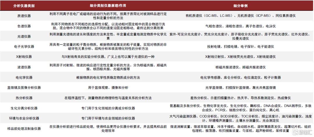 行業概述:分析儀器品類繁多、應用廣泛