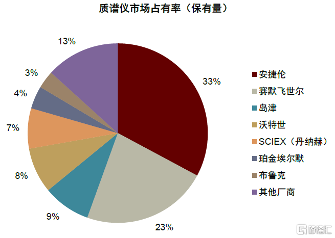 國內市場受進口品牌鉗制,國產儀器在品牌力、產品力上仍需直面差距。我國分析儀器行業長期受海外品牌主導,我們測算2020年質譜儀、色譜儀國產化率約26%、33%,我們認為若考慮海外公司在國內組裝儀器則國產化率更低。特別的,我們估計50萬元以上大型科研儀器中,質譜儀、色譜儀明確為國產品牌的儀器數量佔比不足3%,主要市場被安捷倫、賽默飛世爾、島津、沃特世、SCIEX等海外品牌佔據。究其根本,我們認為國產儀器在長期投入、產品性能與品牌認可度上仍需持續攻堅。