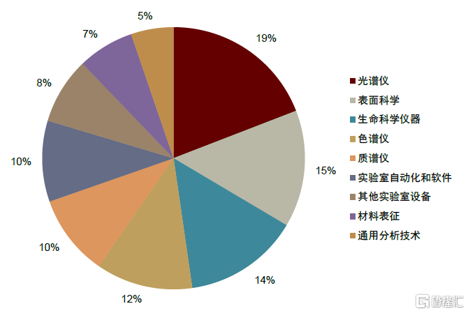 分析儀器涵蓋十餘個細分品類,呈現多品種、小批量特點。根據國家科技基礎條件平台大型科學儀器設備分類,分析儀器可分為電子光學儀器、質譜儀器、X射線儀器、光譜儀器、色譜儀器等12個類別。而全球權威的實驗分析儀器諮詢公司SDI(Strategic Directions International)將行業分為10個細分領域,其中光譜儀、表面科學、生命科學儀器、色譜儀、質譜儀佔比較高,2017年全球規模佔比分別為19%、15%、14%、12%、10%,總體而言,儀器行業呈現多品種、小批量的行業特點。